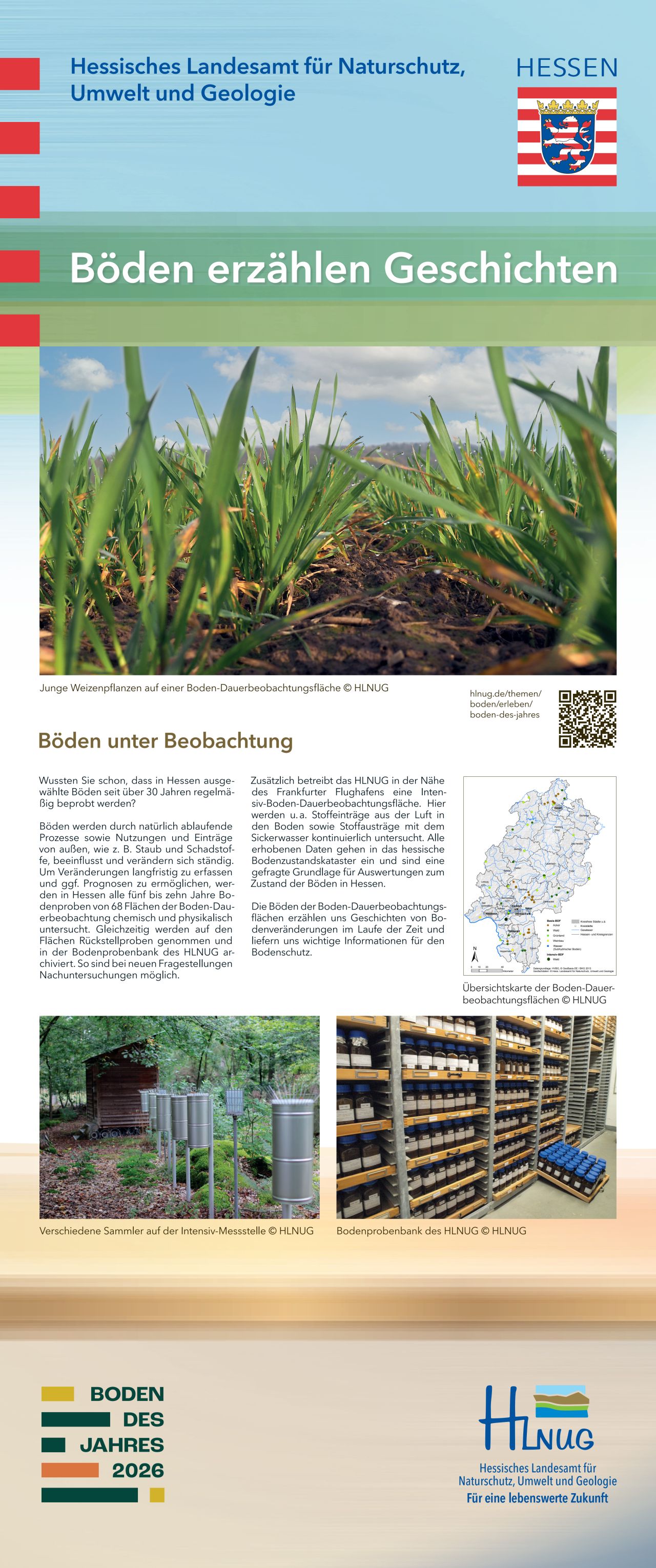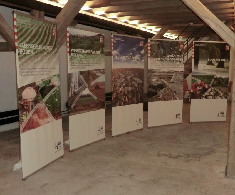 Für die vielfältigen Themenbereiche zum Boden und dem Vorsorgenden Bodenschutz stellt das HLNUG eine Bodenwanderausstellung zur Verfügung, die von Institutionen, Vereinen u.a. unentgeltlich ausgeliehen werden kann.