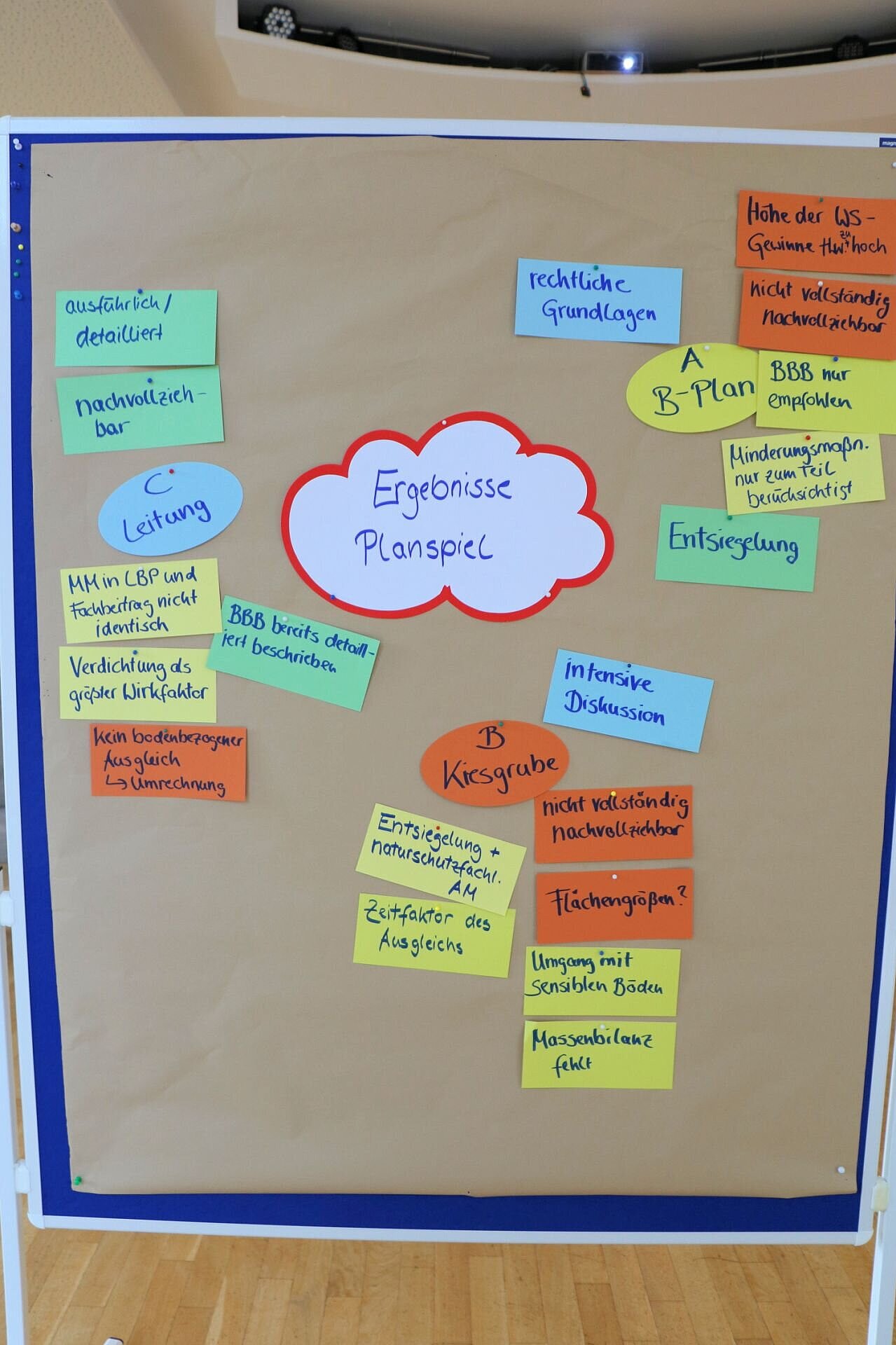 Im Vortragsprogramm wurde allgemein in die Thematik der bodenbezogenen Kompensation eingeführt und die Neuauflage der Arbeitshilfe „Kompensation des Schutzguts Boden in Planungs- und Genehmigungsverfahren“ detailliert eingeführt. Berichte aus der Praxis rundeten das Vortragsprogramm ab. Der Fokus lag bei der Fortbildung auf Planspielen, bei denen die Teilnehmerinnen und Teilnehmern Gelegenheit bekamen, den praktischen Umgang zur bodenfunktionalen Bewertung und zur Ermittlung des Kompensationsbedarfs an realen Fallbeispielen zu diskutieren.