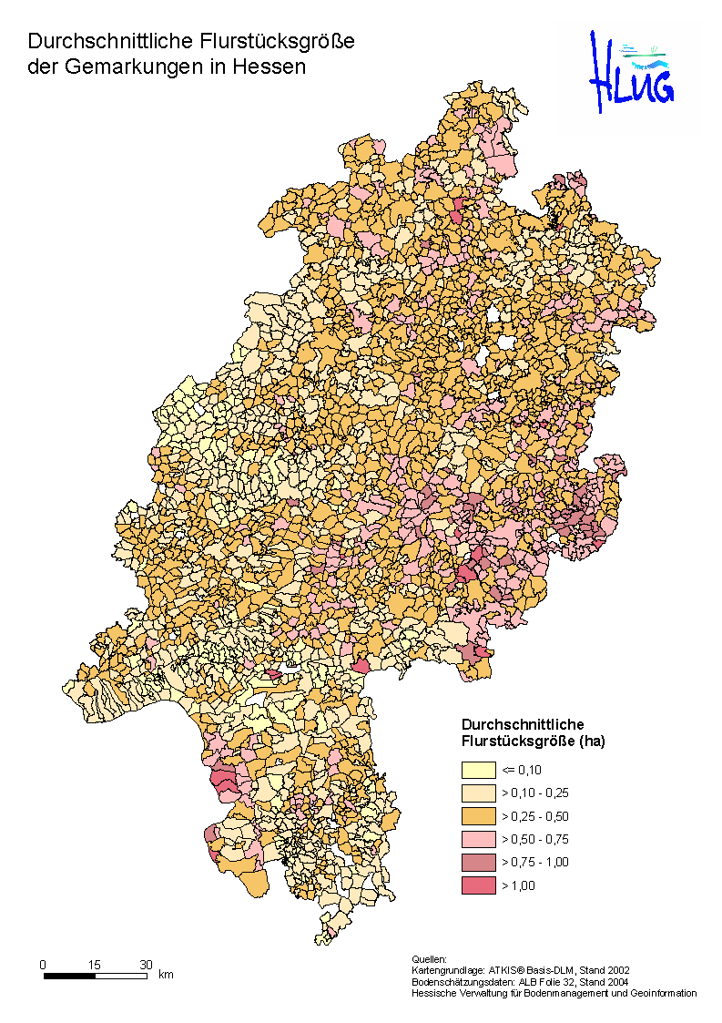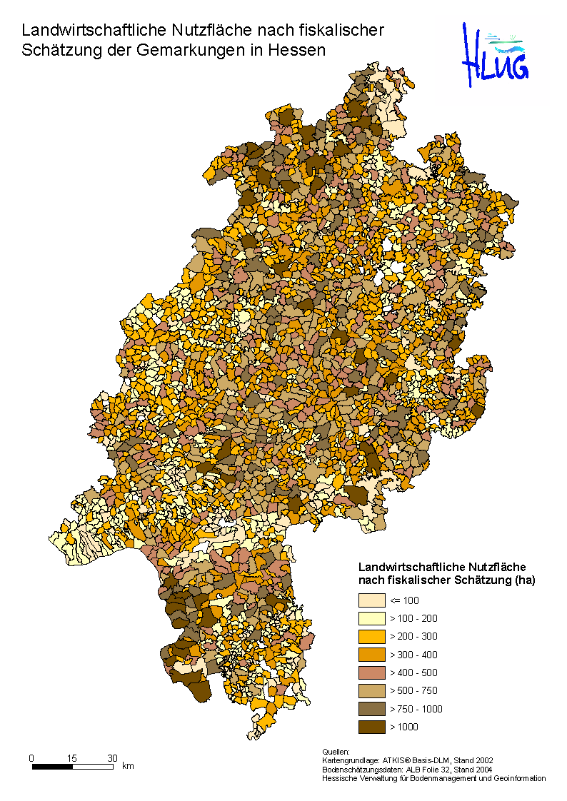 Neben der flurstücksbezogenen Auswertung mit Hilfe der Methoden zu den Klassenzeichen lassen sich auf dieser Datengrundlage sehr gut landesweite, vergleichende Auswertungen auf der Darstellungsebene der Gemarkungen vornehmen.