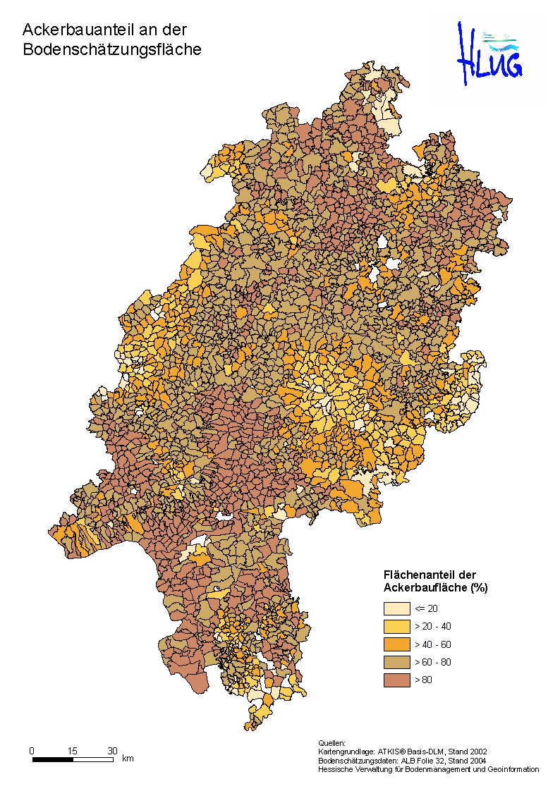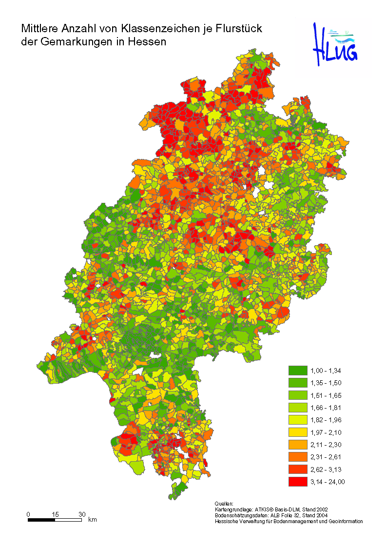 Die folgenden Tabellen geben Auskunft über die Abfolge der 100 "beliebtesten" Klassenzeichen Hessens und die Flächenanteile der Klassenzeichen in den mehr als 2800 Gemarkungen Hessens: