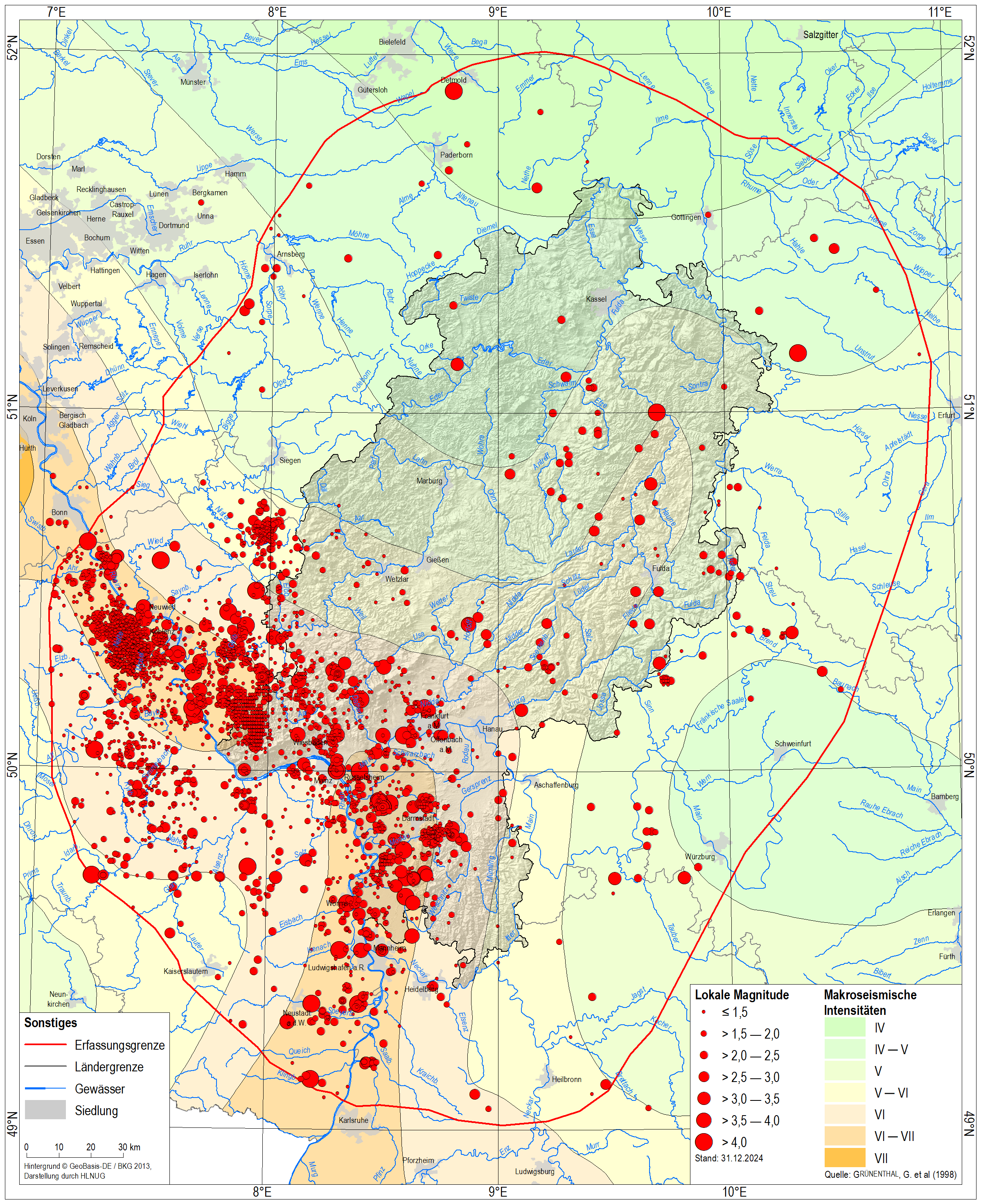 Zur Detektion und Lokalisierung von Erdbeben in Hessen unterhält der Hessische Erdbebendienst ein umfangreiches hessenweites Stationsnetz. Informationen zu den einzelnen Messstationen werden regelmäßig aktualisiert. Mehr