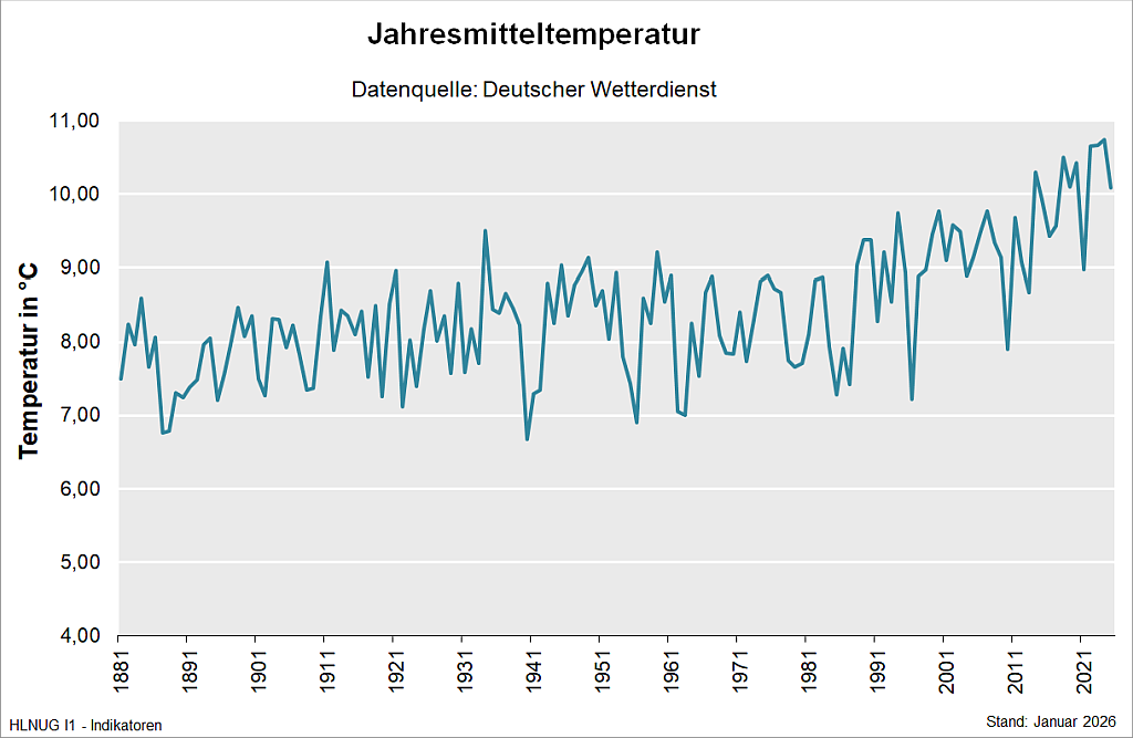 Die in Hessen seit 1881 flächendeckend aufgezeichneten Daten zur Lufttemperatur sind somit als Information unverzichtbar, um Entwicklungen und Veränderungen in Ökosystemen im Zusammenhang mit klimatischen Veränderungen zu beobachten.