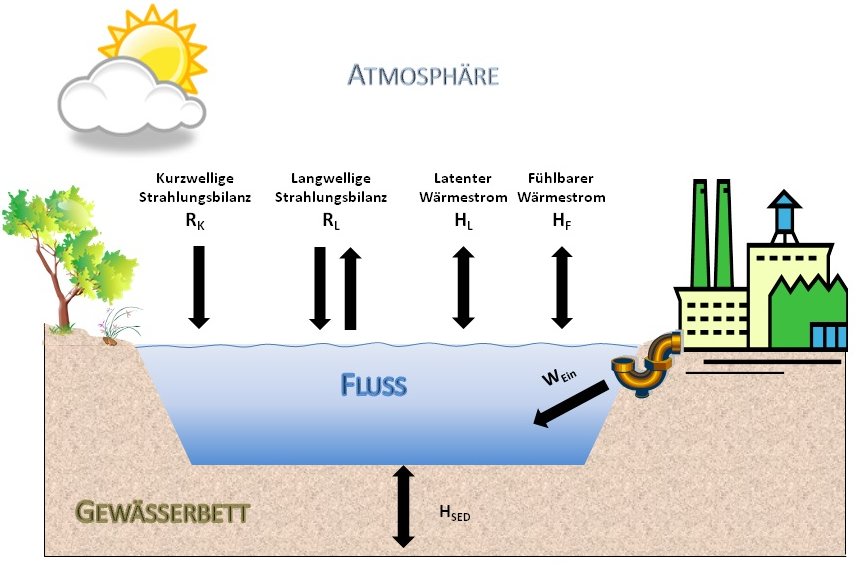 Die Wassertemperaturen in Fließgewässern werden maßgeblich durch die vorherrschende Lufttemperatur und den Durchfluss im Gewässer beeinflusst. Sommerlich hohe Lufttemperaturen und einfallende Strahlung führen in Verbindung mit geringen Durchflüssen zu höheren Wassertemperaturen. Außerdem werden z. T. die Temperaturen durch die Einleitung von Abwärme von Kraftwerken und anderen industriellen Einleitern beeinträchtigt.