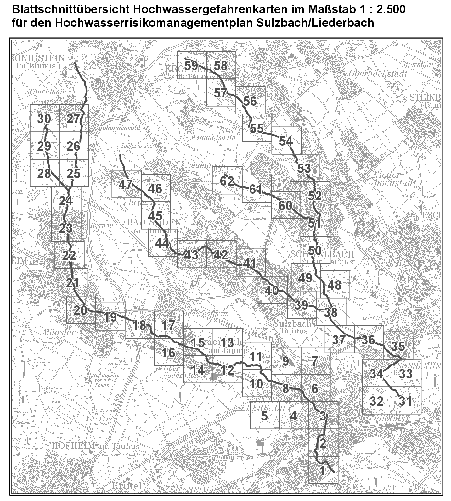 Blattschnitte der Hochwassergefahrenkarten