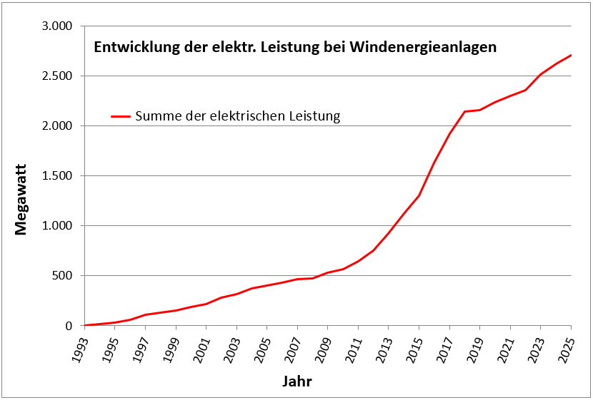 Tabelle 1: Aktuelle Anzahl und elektrische Leistung der Windenergieanlagen
